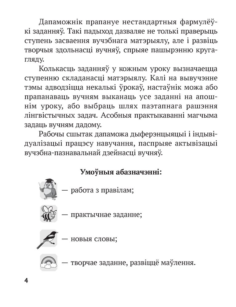 Сшытак адпавядае вучэбнай праграме і зместу падручнікаў па беларускай мове і літаратурным чытанні. У дапаможніку прапануюцца цікавыя творчыя заданні розных узроўняў складанасці, што дазволіць школьнікам праверыць і замацаваць атрыманыя на ўроках веды. Рэалізаваны ў выданні прынцып міжпрадметных сувязей будзе садзейнічаць комплекснаму засваенню вучэбнага матэрыялу.
