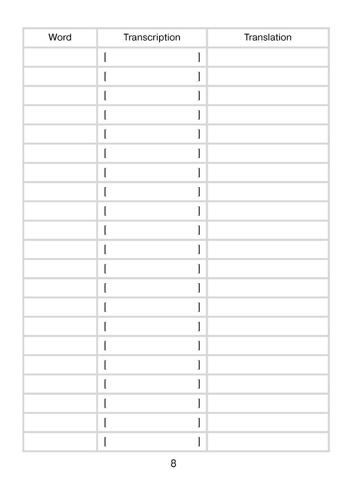 Издание представляет собой тетрадь для ведения словаря, необходимого учащимся 3–11 классов при изучении английского языка. Оно состоит из таблицы с колонками для записи слов на русском языке, их перевода и транскрипции. В пособии также приведены основные правила по грамматике английского языка, владение которыми поможет избежать наиболее часто допускаемых ошибок.
