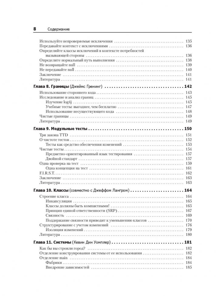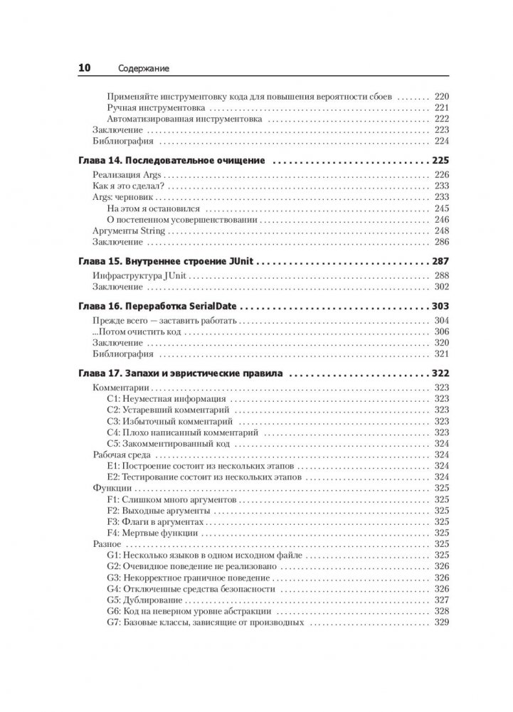 Плохой код может работать, но он будет мешать развитию проекта и компании-разработчика, требуя дополнительные ресурсы на поддержку и «укрощение». Каким же должен быть код? Эта книга полна реальных примеров, позволяющих взглянуть на код с различных направлений: сверху вниз, снизу вверх и даже изнутри. Вы узнаете много нового о коде. Более того, научитесь отличать хороший код от плохого, узнаете, как писать хороший код и как преобразовать плохой код в хороший. Книга состоит из трех частей. Сначала вы познакомитесь с принципами, паттернами и приемами написания чистого кода. Затем приступите к практическим сценариям с нарастающей сложностью — упражнениям по чистке кода или преобразованию проблемного кода в менее проблемный. И только после этого перейдете к самому важному — концентрированному выражению сути этой книги — набору эвристических правил и «запахов кода». Именно эта база знаний описывает путь мышления в процессе чтения, написания и чистки кода.