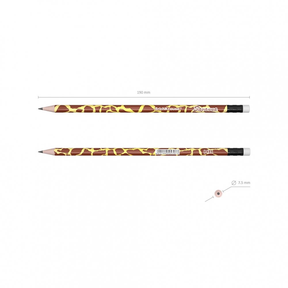 Карандаш чернографитный, круглый с ластиком "Savanna", HB