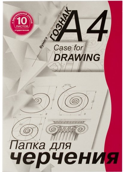 Папка для черчения студенческая, А4, с вертикальной рамкой, 10 листов, бумага чертёжная марки А (ватман) производства СПБФ Гознака, плотность 180 г/м².
