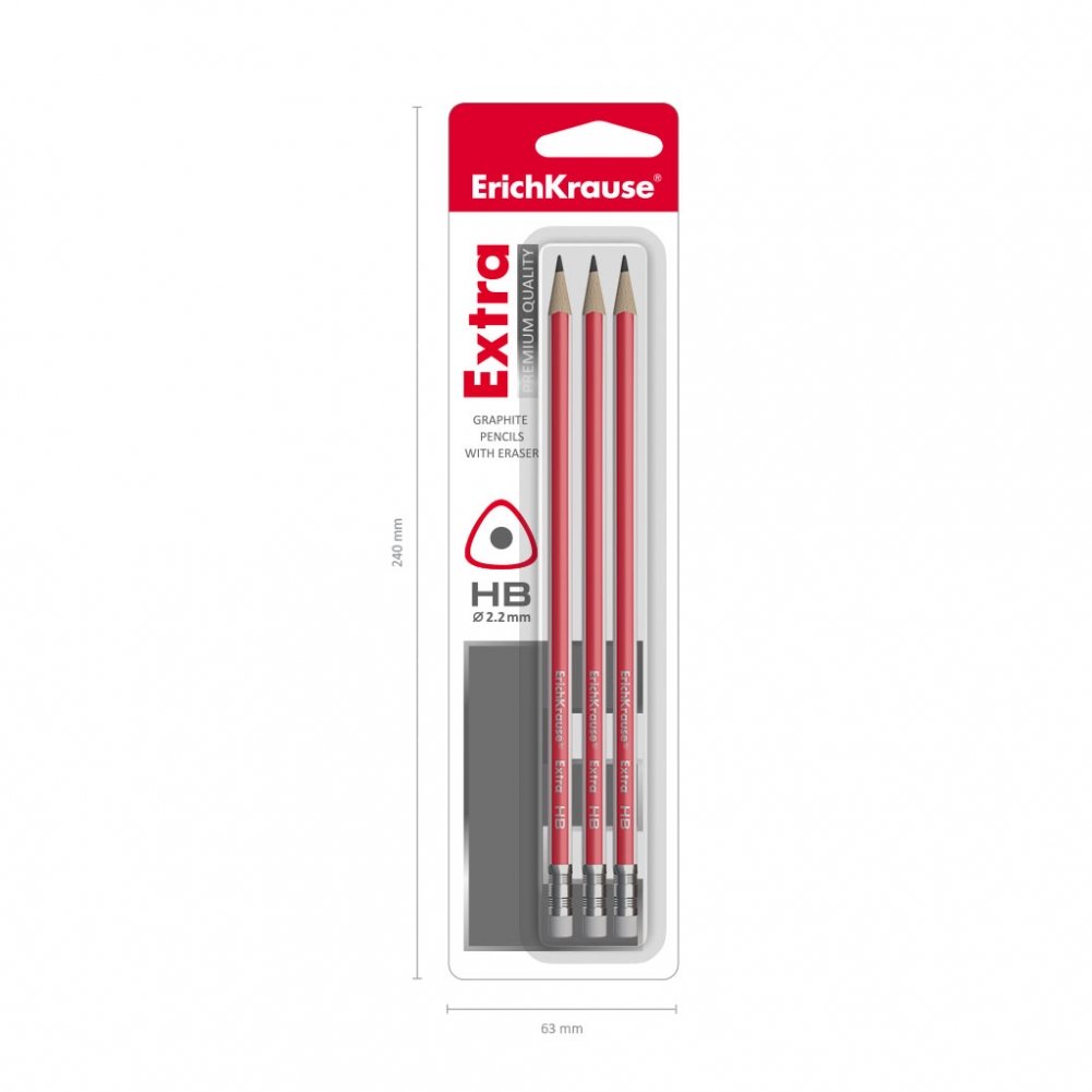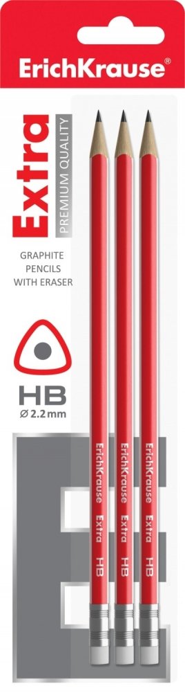 Набор чернографитных трехгранных карандашей с ластиком "EXTRA", 3 штуки