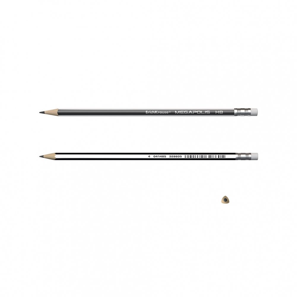 Эргономичный трехгранный чернографитный карандаш с ластиком из отборной древесины, твердость: НВ.