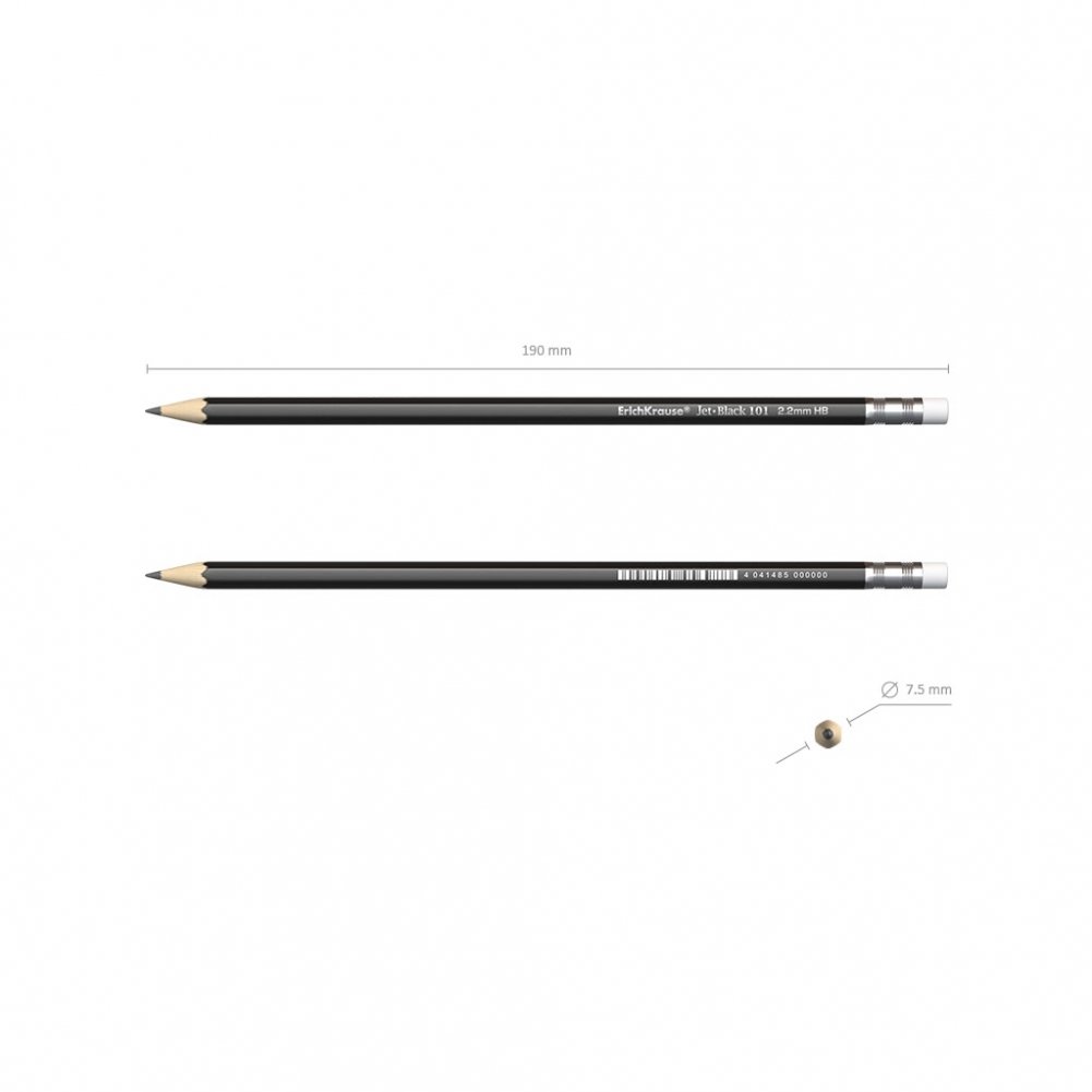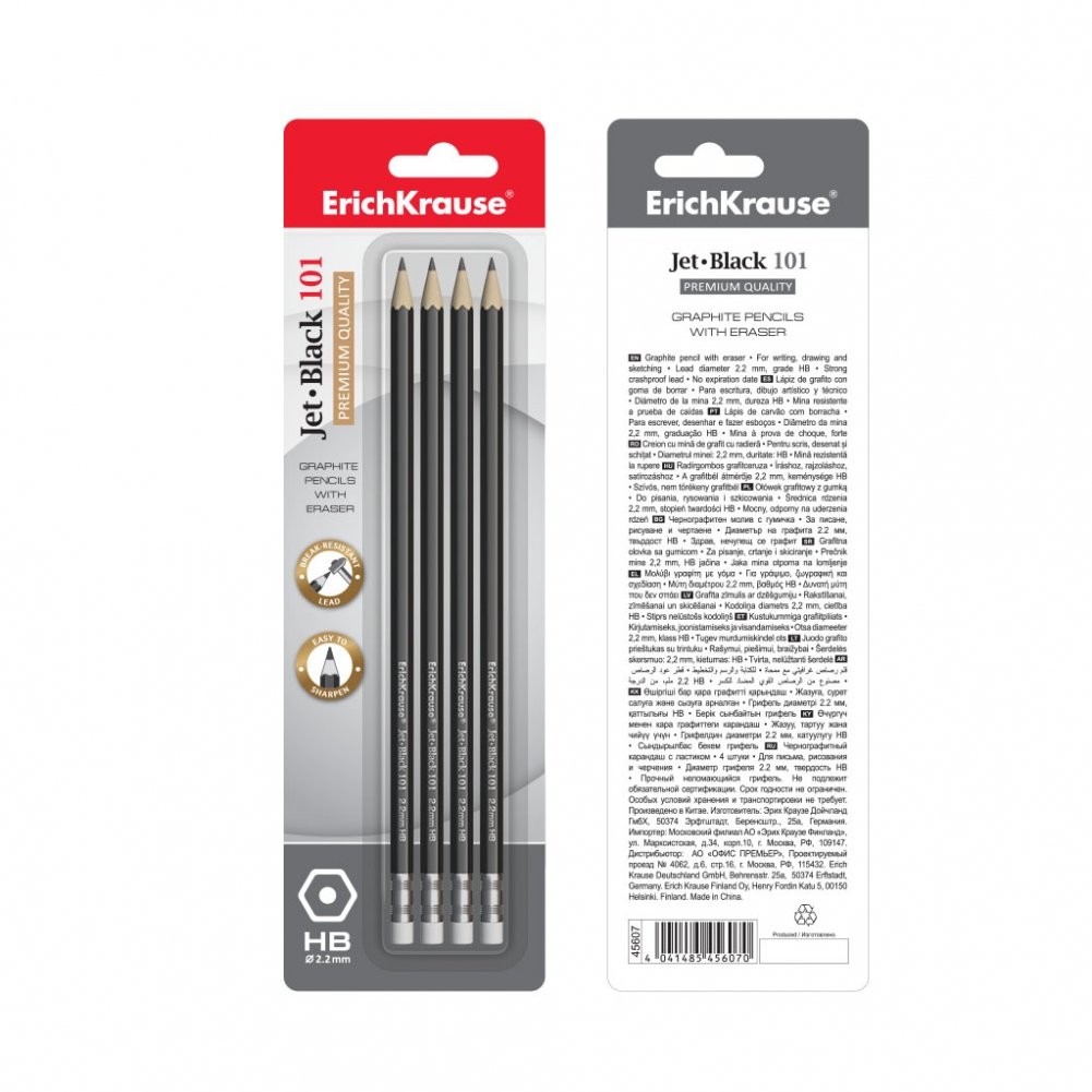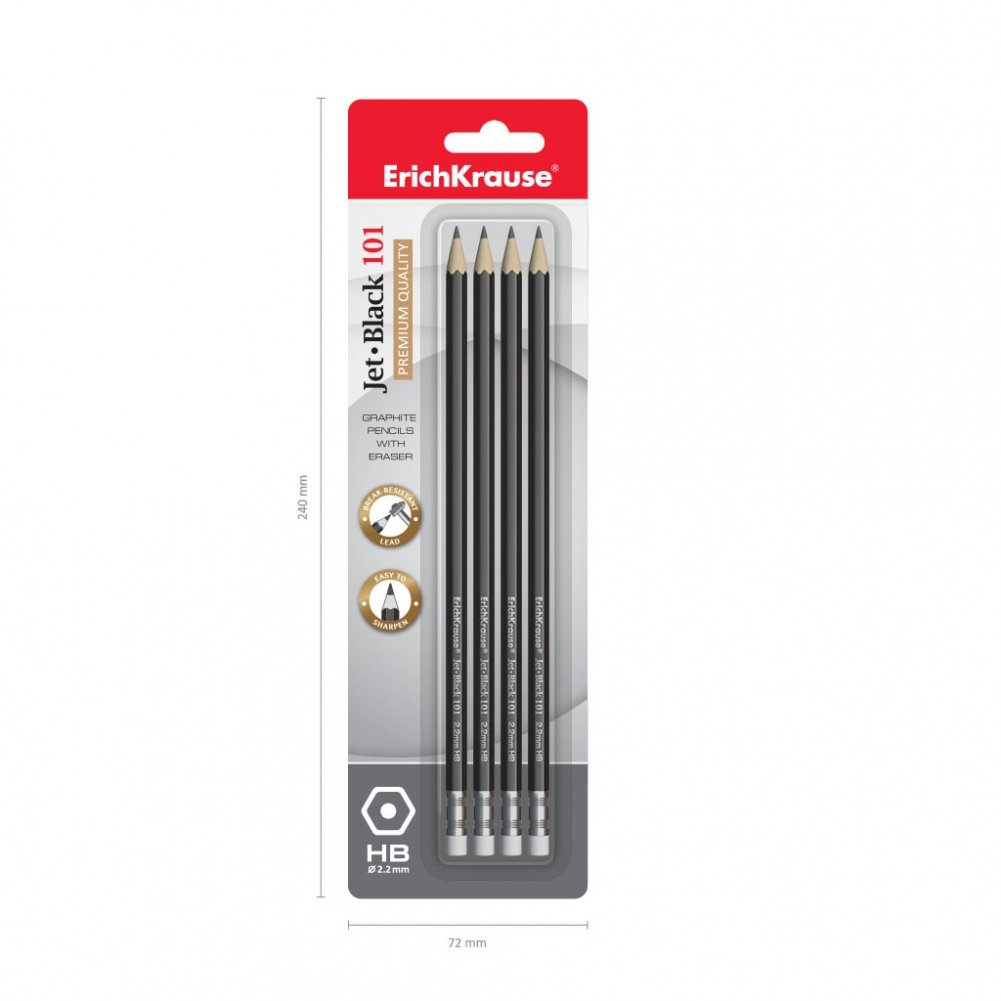 Набор из 4-х чернографитных карандашей с ластиком "Jet Black 101", HB