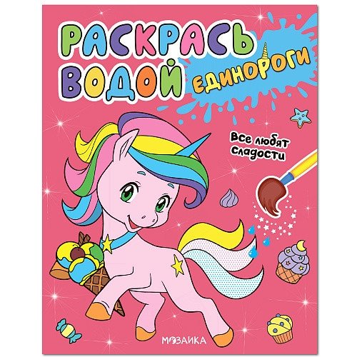Раскраска «Все любят сладости» из серии «Раскрась водой. Единороги» — это волшебная водная раскраска для самых маленьких художников. Для работы с ней понадобится только кисточка и вода: проведите влажной кисточкой по странице — и рисунок заиграет яркими красками! Дайте раскрашенной страничке высохнуть, переверните ее — и волшебство продолжится. Познакомьтесь с жителями Сказочной страны — единорогами, и отправляйтесь вместе с ними в увлекательное путешествие в Долину сладостей. Читайте историю, раскрашивайте милых героев и удивительные пейзажи — и это время станет по-настоящему волшебным!
