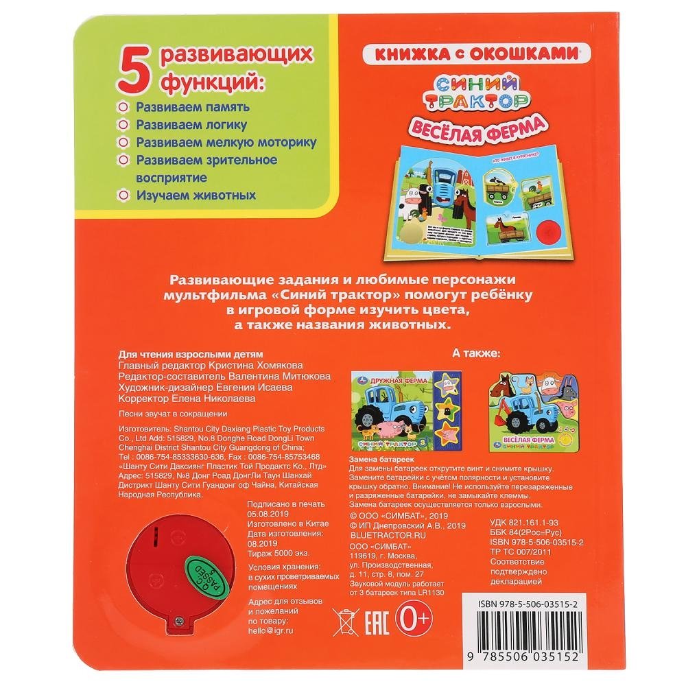 Музыкальная книга с окошками "Синий трактор. Весёлая ферма"