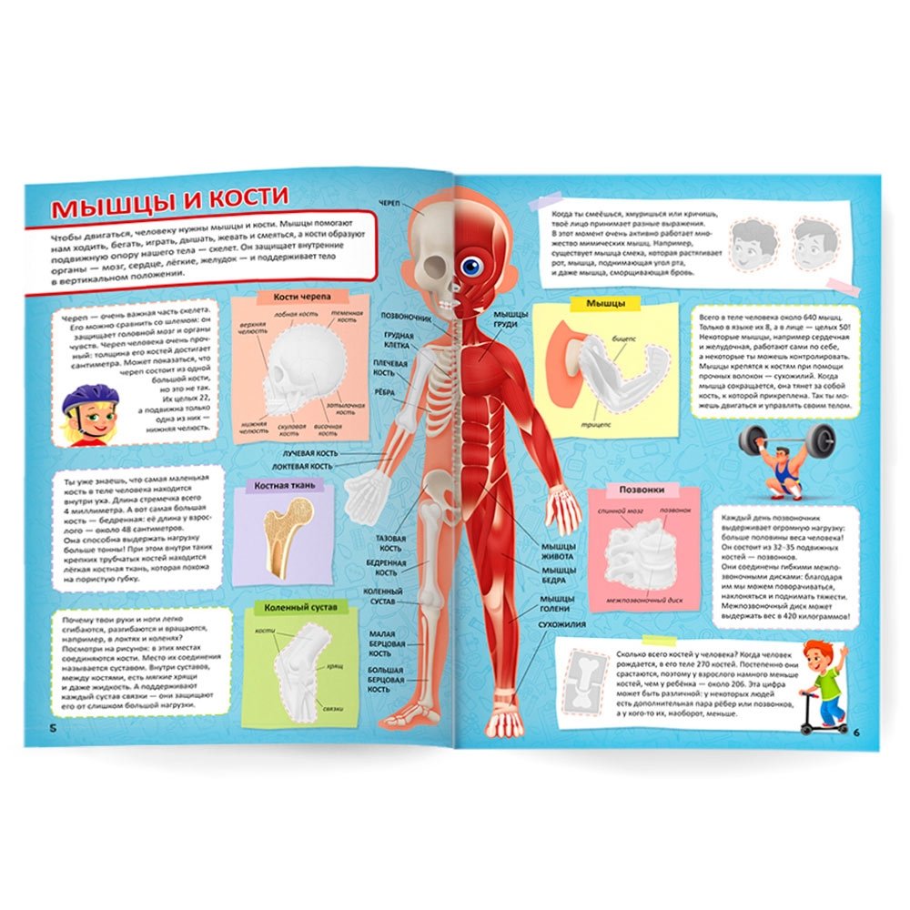 Как в доступной форме объяснить ребёнку устройство человеческого тела? Легко с нашим атласом «Тело человека». В нём простым и понятным ребёнку языком рассказывается о том, как устроен организм человека, как работает наш иммунитет, сколько костей в теле и ещё много всего интересного. Самые любознательные смогут найти на первой странице увлекательный кроссворд. Ну и конечно, куда же без ярких и интересных наклеек, место которых нужно разыскать в атласе.