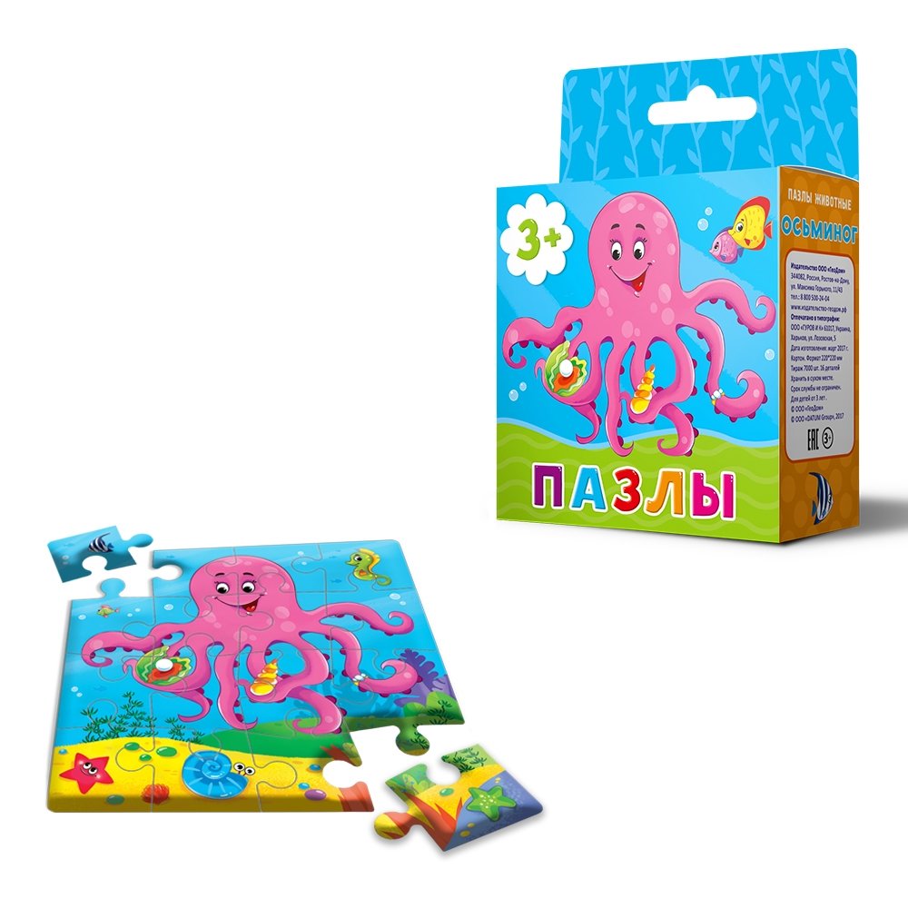 Животные. Осьминог. Пазл (16 деталей)