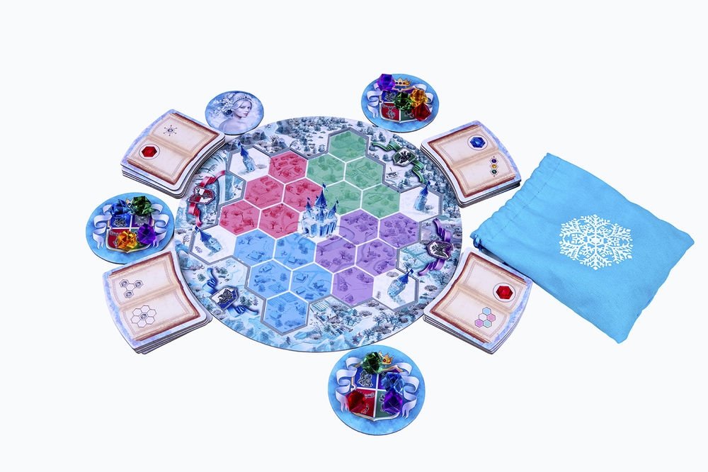 "Зимняя королева" - это абстрактная семейная игра, в которой вы перевоплотитесь в королевских чародеев и будете складывать волшебные ледяные узоры, соревнуясь за место главного советника Зимней королевы. Она подходит для игр с детьми, поскольку её правила очень просты, а также для продвинутых игроков: в ней необычные механики и есть стратегическая глубина.