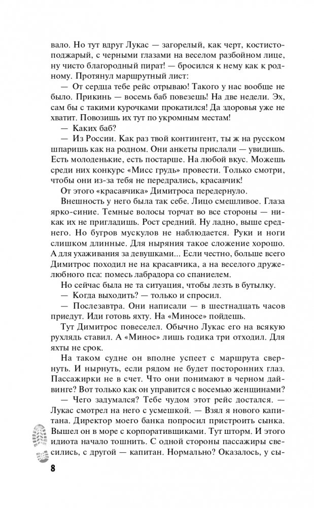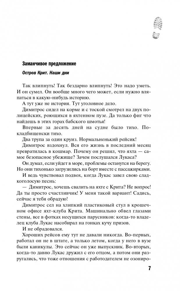 Если интересной девушке немного за тридцать и серьезных отношений у нее нет, зато есть предприимчивая подруга, тоже незамужняя, то даже оздоровительный круиз на яхте вокруг острова Крит может обернуться криминальными приключениями. Для того, чтобы выжить, Машке и Лене — главным героиням остросюжетного романа Натальи Барабаш из серии «Туристический детектив» — придется использовать все свои расследовательские навыки.