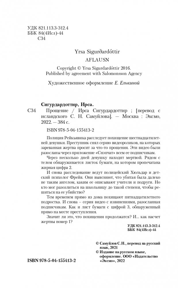 Полиция Рейкьявика расследует похищение шестнадцатилетней девушки. Преступник снял серию видеороликов, на которых зареванная жертва просит за что-то прощения. Эти видео были разосланы через приложение "Снэпчат" всем ее подписчикам. Через несколько дней девушку находят мертвой. Рядом с телом обнаруживается листок бумаги, на котором пропечатана жирная цифра "2". И снова расследование ведут полицейский Хюльдар и детский психолог Фрейя. Они выясняют, что убитая была далеко не таким ангелом, каким ее описывают учителя и подруги. Но кто мог разозлиться на школьницу до такой степени, чтобы решиться на ее убийство? Тем временем прямо из дома похищают пятнадцатилетнего подростка. И снова – серия видео с извинениями, разосланная подписчикам. Как и лист бумаги с цифрой 3, обнаруженный прямо на месте преступления. Значит ли это, что похищения продолжатся? И… как насчет жертвы номер 1?