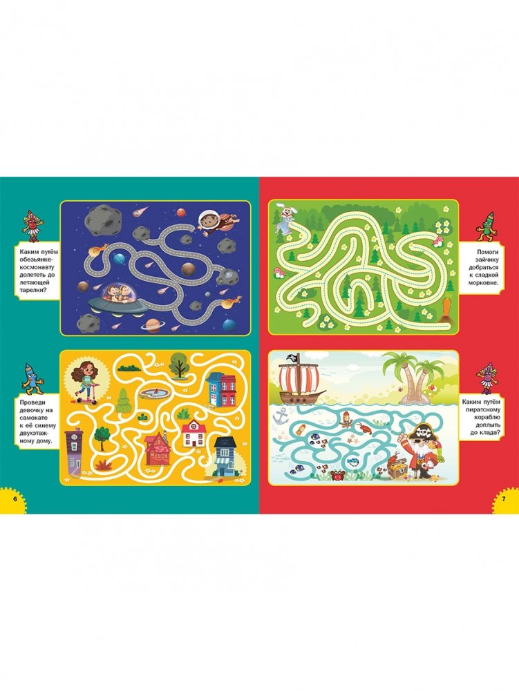 Перед вами книжка с несложными лабиринтами, которые ваш малыш будет с интересом разглядывать и, вероятно, впервые самостоятельно «попутешествует» и по заснеженным горам, и по космосу, и по морскому дну, развивая своё внимание. Это занятие-игра поможет ему в развитии мелкой моторики, расширит его кругозор. Вместе со своим ребёнком вы весело и с пользой проведёте время!