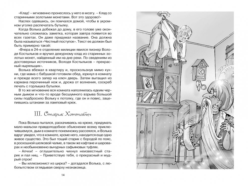 Повесть-сказка «Старик Хоттабыч» вышла в 1938 году и с тех пор стала одной из самых любимых детских книг. Уже несколько поколений мальчишек и девчонок нашей страны с удовольствием читают о приключениях джинна, попавшего из древних времен царя Соломона в советскую страну конца 1930-х годов. И не важно, что книга была написана почти сто лет назад, ведь история о том, как пионер Волька Костыльков выловил в реке старинный кувшин и выпустил из него джинна, – по-настоящему добрая, веселая и увлекательная. Она переведена на многие языки, в том числе на английский, немецкий, чешский, болгарский, китайский…