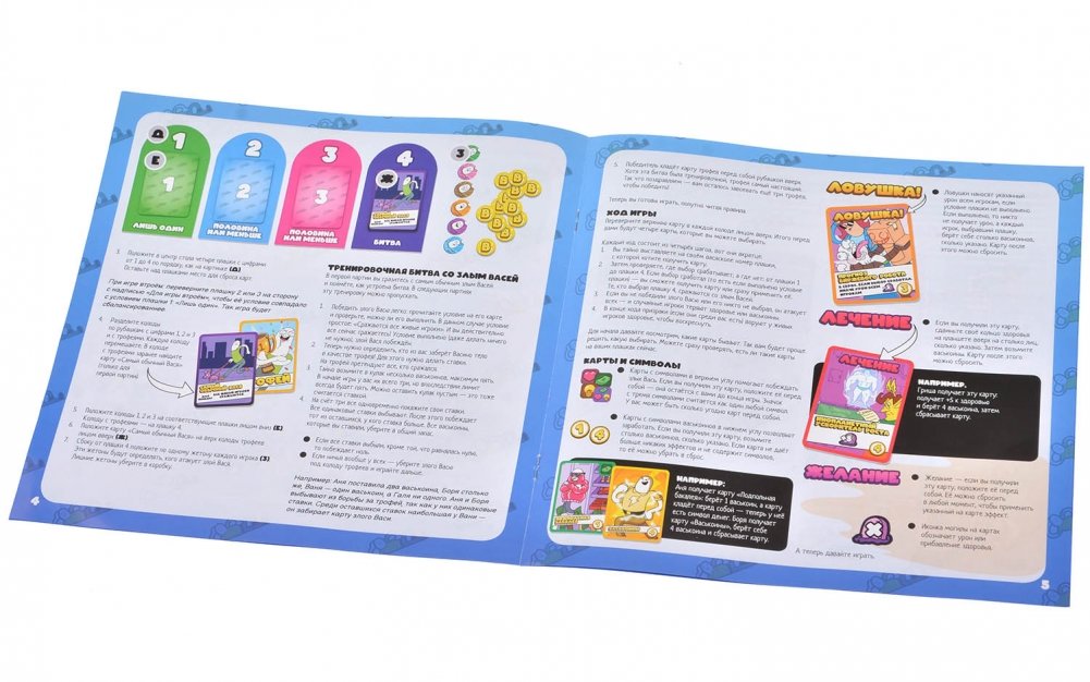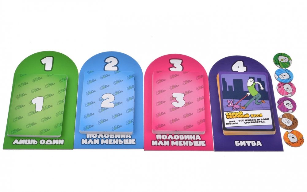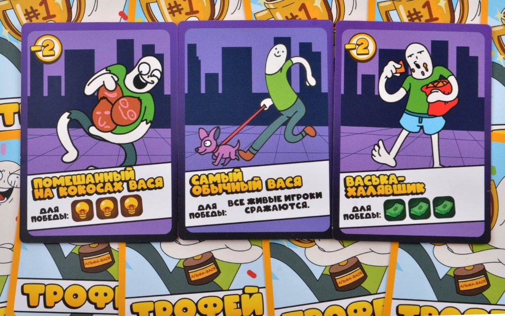 Вселенные схлопнулись, и все стали Васями. Упс! Остаётся только доказать, что самый главный Вася тут вы, а остальные — жалкие подражатели. Копите полезные карты и боритесь за трофеи — победит тот, кто первым накопит четыре трофея. Это весёлая игра с блефом, подставами и абсурдными картинками.