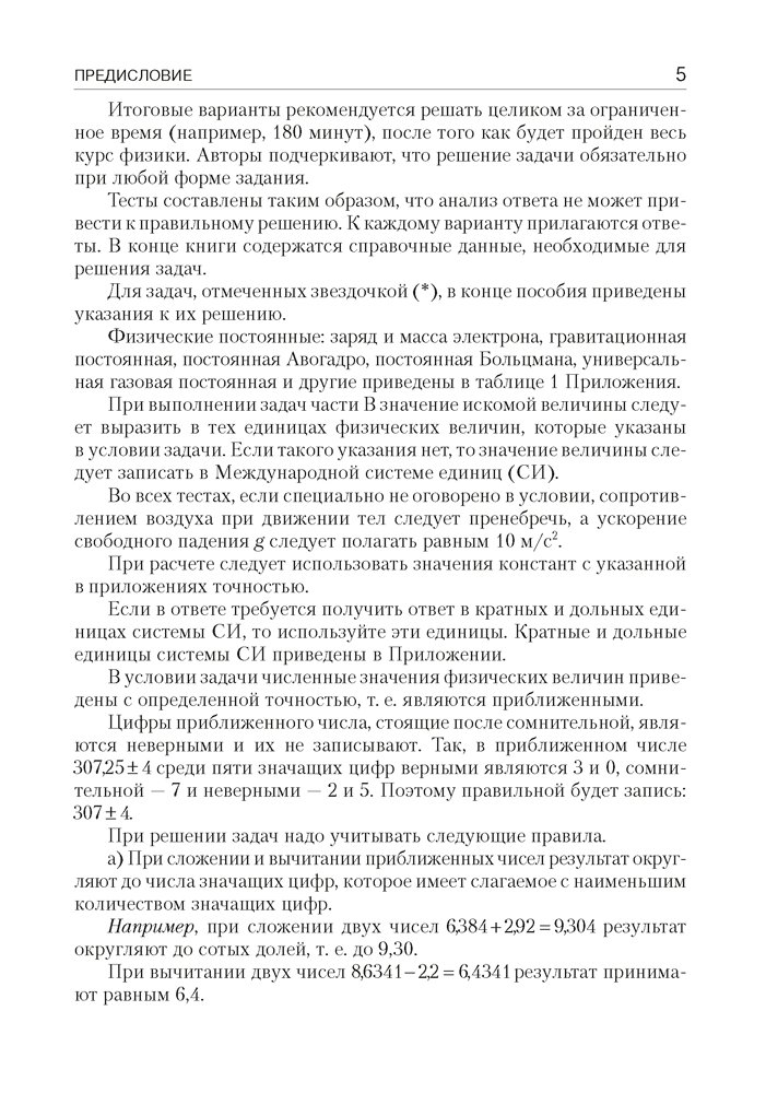 Пособие содержит основные физические понятия, законы и формулы, а также тестовые задания, которые охватывают все типы задач, предлагаемые абитуриентам на централизованном тестировании по физике. В конце книги приведены три варианта проверочных заданий, восемь вариантов итоговых тестов, которые можно выполнить онлайн на нашем сайте, а также табличные данные.
