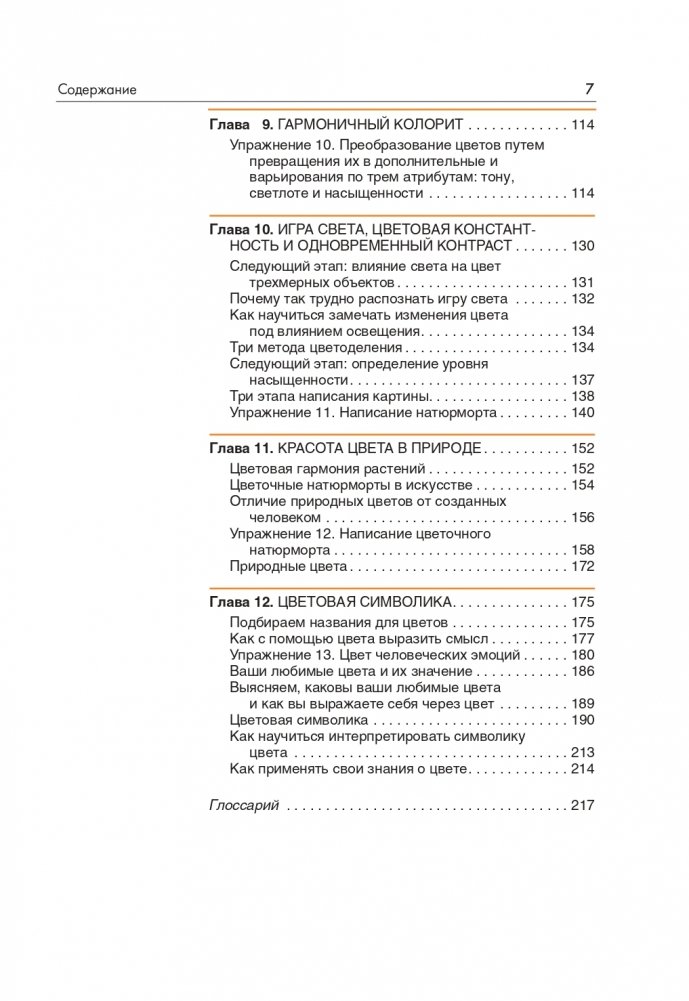 Здесь вы найдете упражнения (начиная от самых простых и постепенно переходя к самым сложным), сопровождающиеся сотнями иллюстраций. Они помогут вам разобраться, как устроен цвет, и научат видеть то, что действительно у нас перед глазами, а не то, что мы знаем о цветных объектах. Книга принесет пользу и новичкам, которые только начинают работать с цветом, и опытным художникам.