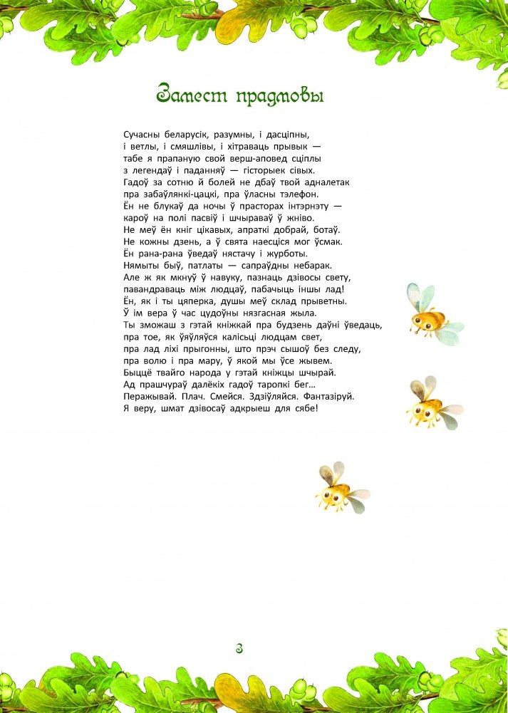 У кнізе сабраны цікавыя легенды і паданні з розных мясцін Беларусі, што засталіся нам ад прадзедаў як каштоўны скарб. Аўтар надаў ім вершаваную форму, дакладна захаваўшы арыгінальны сюжэт кожнага старога аповеду. Такая незвычайная падача матэрыялу мусіць задаволіць густ нават самага дасведчанага сучаснага чытача.