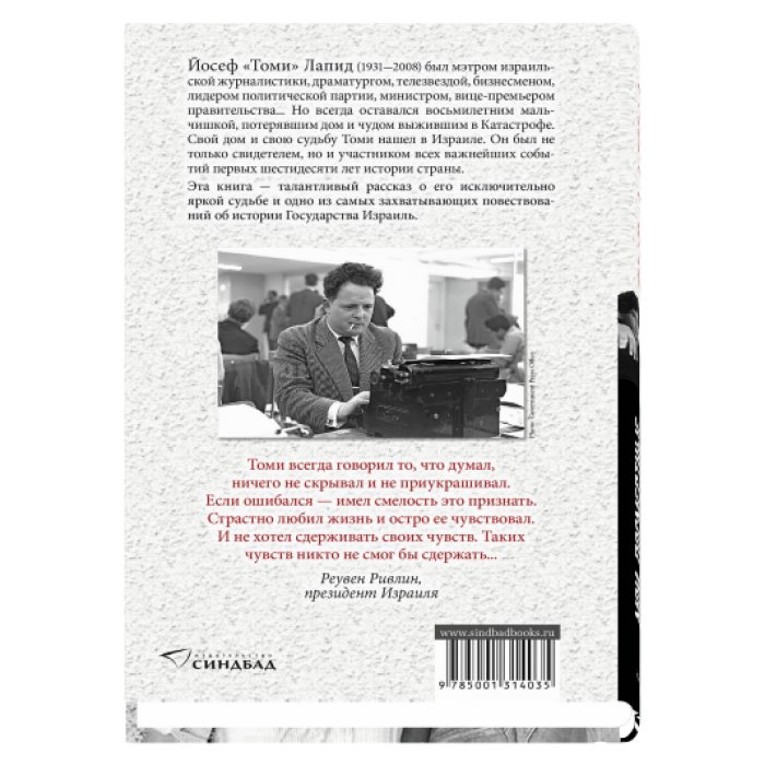 Это очень личная история человека, спасшегося от Холокоста, обретшего новую родину и прожившего выдающуюся жизнь, и одновременно история становления Государства Израиль, свидетелем и самым активным участником которой был Томи Лапид.