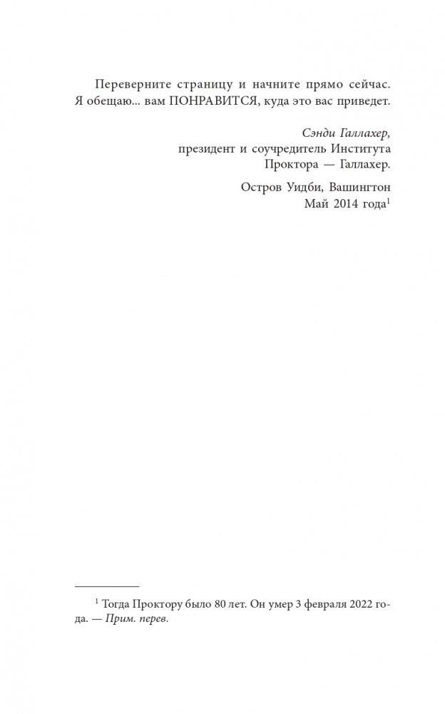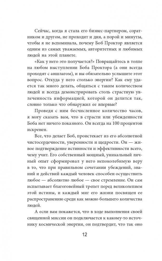 Для миллионов людей Боб Проктор являлся олицетворением успеха. Вдохновившись книгами и радиопрограммами корифея личностного роста Эрла Найтингейла, он построил невероятно успешную деловую карьеру, а затем достиг мировой славы, исповедуя идеи, изложенные в книге Наполеона Хилла «Думай и богатей» и других классических трудах об успехе и процветании. В сообществе специалистов по бизнес-мотивации он занимает столь же высокое положение, как Стивен Кови или Ог Мандино.