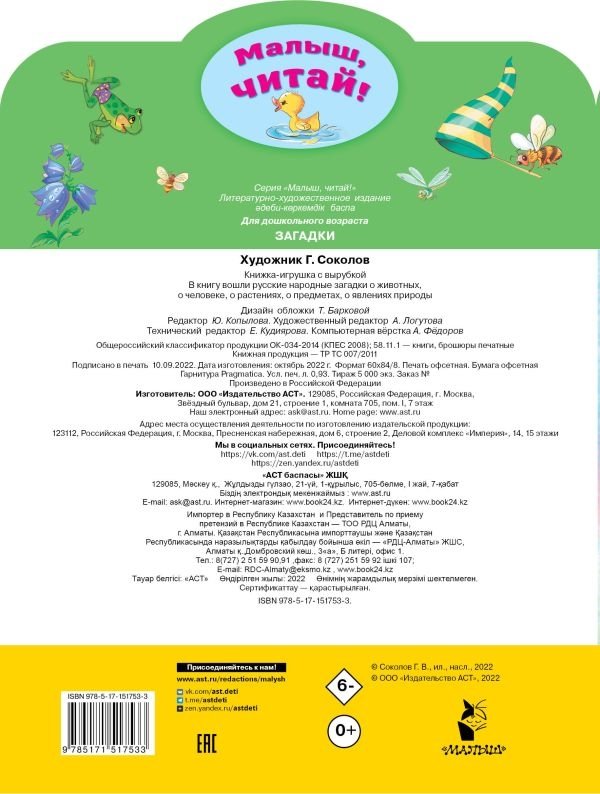 В старые времена загадками могли объяснять явления природы и того, что нас окружает. Часто загадки можно встретить и в сказках: загадками испытывают главного героя. Сейчас загадки - это отличные помощники в развитии малыша: они раскрывают многогранность руского языка, развивают сообразительность и догадливость. В нашу книжку вошли русские народные згадки о животных, о человеке, о растениях, о предметах, о явлениях природы.