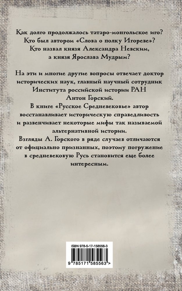 В книге "Русское Средневековье" автор восстанавливает историческую справедливость и развенчивает некоторые мифы так называемой альтернативной истории.
