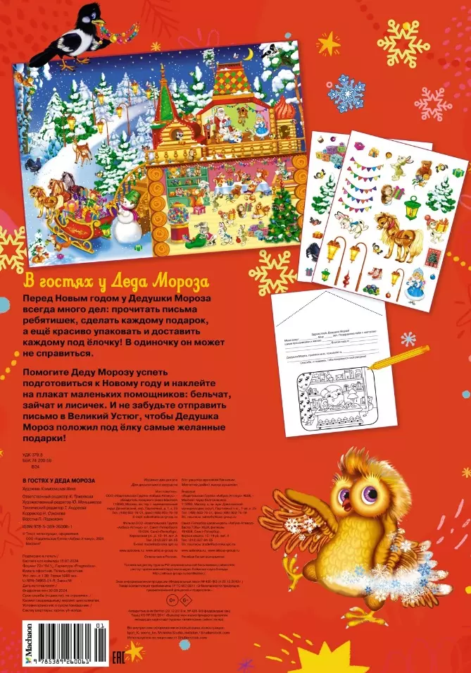 Перед Новым годом у Дедушки Мороза всегда много дел: прочитать письма ребятишек, сделать каждому подарок, а ещё красиво упаковать и доставить каждому под ёлочку! В одиночку он может не справиться. Помогите Деду Морозу успеть подготовиться к Новому году и наклейте на плакат маленьких помощников: бельчат, зайчат и лисичек. И не забудьте отправить письмо в Великий Устюг, чтобы Дедушка Мороз положил под ёлку самые желанные подарки!
