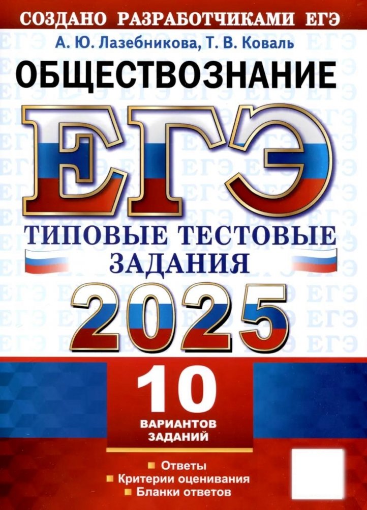 ЕГЭ 2025. Обществознание. 10 вариантов. Типовые тестовые задания от разработчиков ЕГЭ