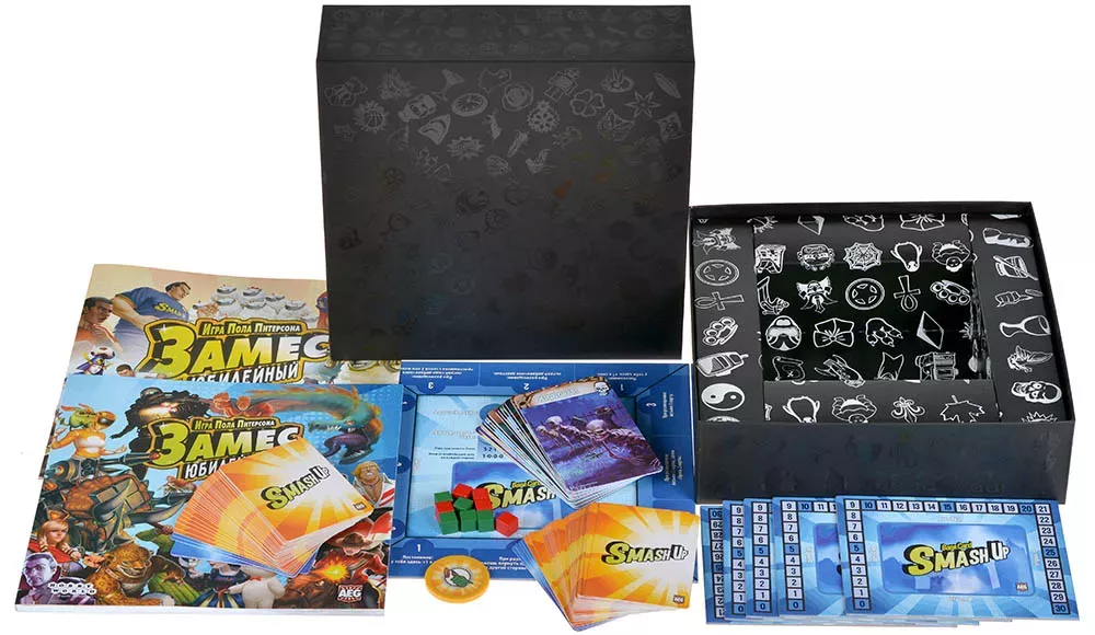 Внутри этой коробки вас ждёт новый игровой режим "Большая база", а также четвёрка абсолютно новых фракций: футбольные звездарности, русалки, овечки и скелеты! Но это было бы слишком простым наполнением для юбилейного выпуска, поэтому в составе вы также найдёте красочный артбук и пластиковые карты титанов! Кстати, фишка первого игрока тоже теперь пластиковая. А ещё вы найдёте новых персонажей, впервые появляющихся в этой серии, и кучу разных интересностей и приятностей. Это просто праздник какой-то!