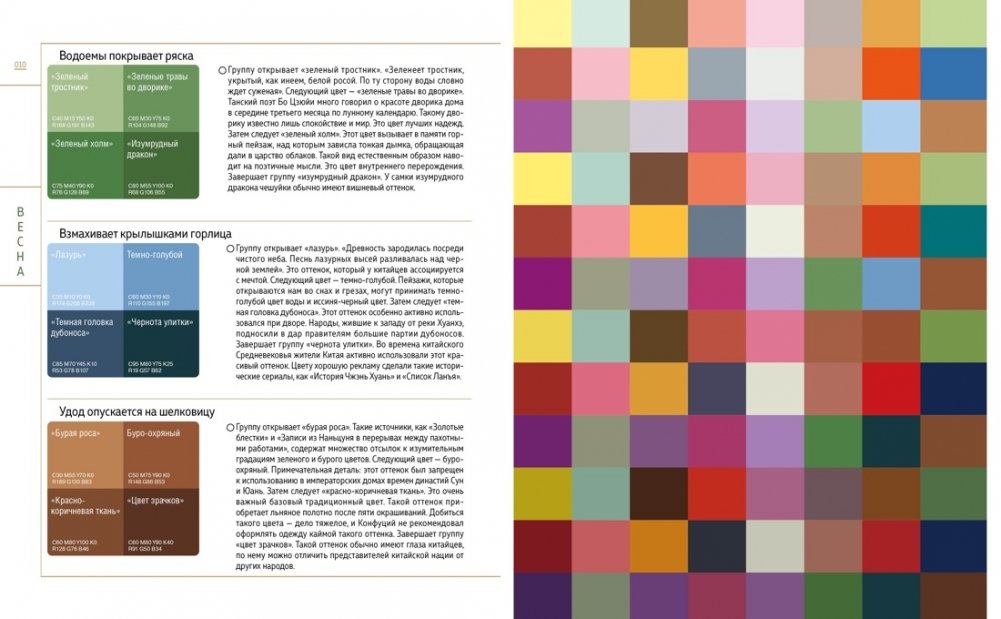 Книга представляет собой исчерпывающую энциклопедию традиционных цветов, применяемых в китайском искусстве и культуре на протяжении веков. Авторы исследуют историю и символику цветов и подробно объясняют их свойства и значения в прошлом и настоящем китайской культуры. Сведения, почерпнутые в колоссальном корпусе древних текстов, богато проиллюстрированы произведениями, хранящимися в Запретном городе — пекинском императорском дворце.