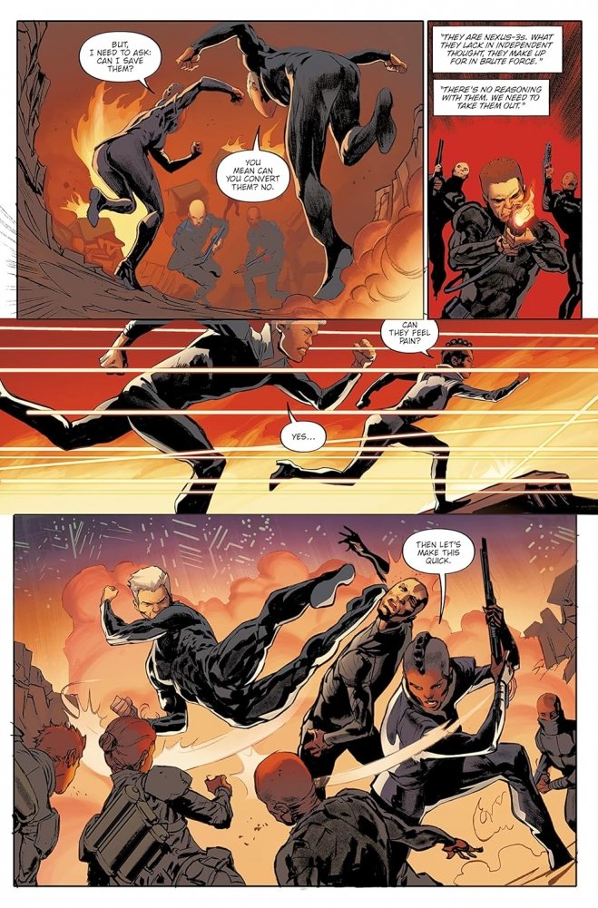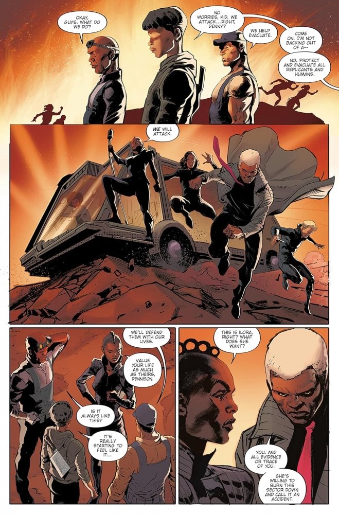 TYRELL CORP executive ILORA STAHL has instigated a brutal purge of L.A.’s Sector–6B, in an attempt to kill a rogue NEXUS 5 prototype who is responsible for triggering an uprising of Nexus 4 REPLICANTS.
