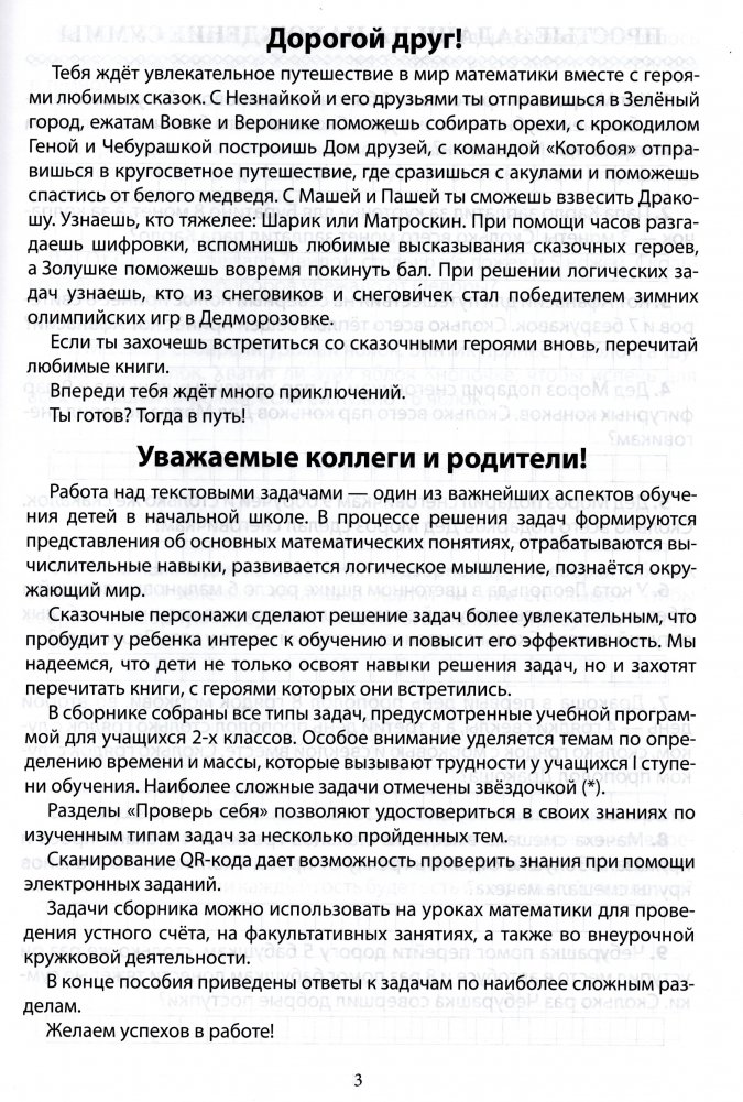 Пособие содержит основные виды задач, предусмотренные учебной программой для учащихся 2-х классов. Материал прежде всего направлен на отработку навыка решения текстовых и логических задач, что способствует развитию функциональной грамотности у детей. Пособие может применяться как сборник дополнительных заданий на уроках, а также для проведения факультативных и кружковых занятий.