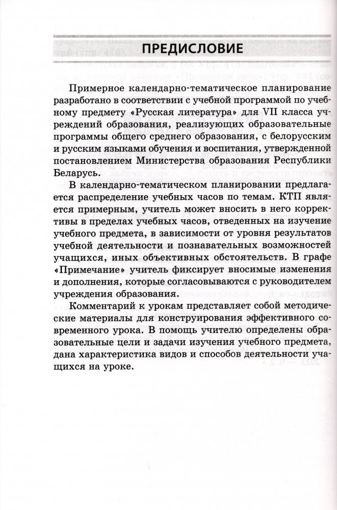 Примерное календарно-тематическое планирование разработано в соответствии с учебной программой по учебным предметам "Русский язык" и "Русская литература" для VII класса учреждений образования, реализующих образовательные программы общего среднего образования, с белорусским и русским языками обучения и воспитания, утвержденной Министерством образования Республики Беларусь.