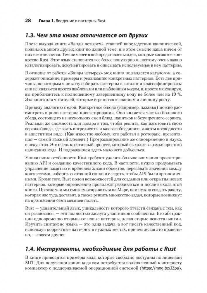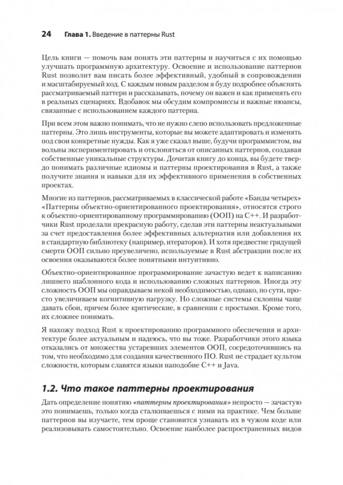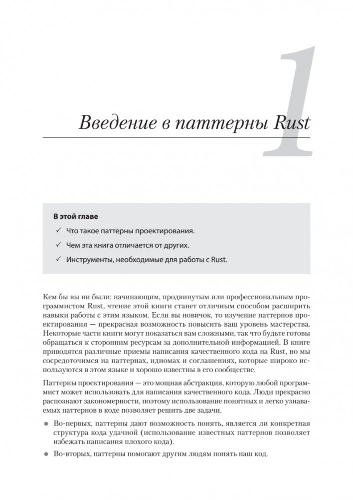 Как только вы освоитесь с синтаксисом Rust, с его уникальным и мощным компилятором и начнете использовать его в реальных проектах, перед вами откроется совершенно новое измерение. Как правильно применять стандартные паттерны проектирования в приложениях на Rust? Как и когда следует использовать IntoIterator? Почему Rust-разработчики любят тип PhantomData? Ответы на эти и многие другие вопросы вы найдете в книге.