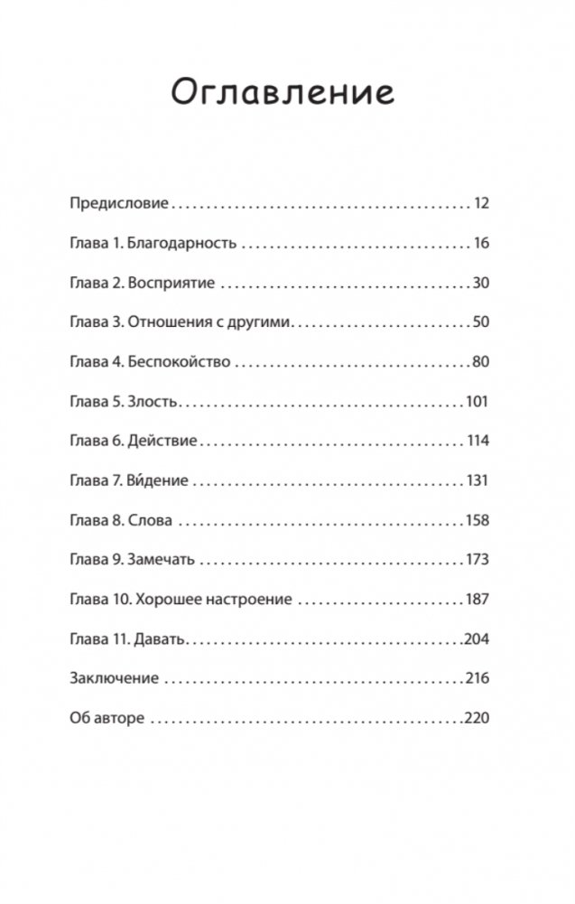 Такэда предлагает 11 правил, которые помогут каждому избавиться от негативного мышления и обрести внутреннее спокойствие. А помогут в этом задания и личные практики, которые автор приводит на страницах этой книги. Следуя его рекомендациям, вы сможете изменить свои отношения с окружающим миром и научиться радоваться каждому дню.