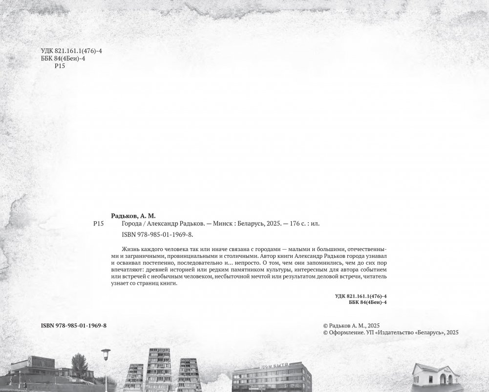Жизнь каждого человека так или иначе связана с городами — малыми и большими, отечественными и заграничными, провинциальными и столичными. Автор книги Александр Радьков города узнавал и осваивал постепенно, последовательно и… непросто. О том, чем они запомнились, чем до сих пор впечатляют: древней историей или редким памятником культуры, интересным для автора событием или встречей с необычным человеком, несбыточной мечтой или результатом деловой встречи, читатель узнает со страниц книги.