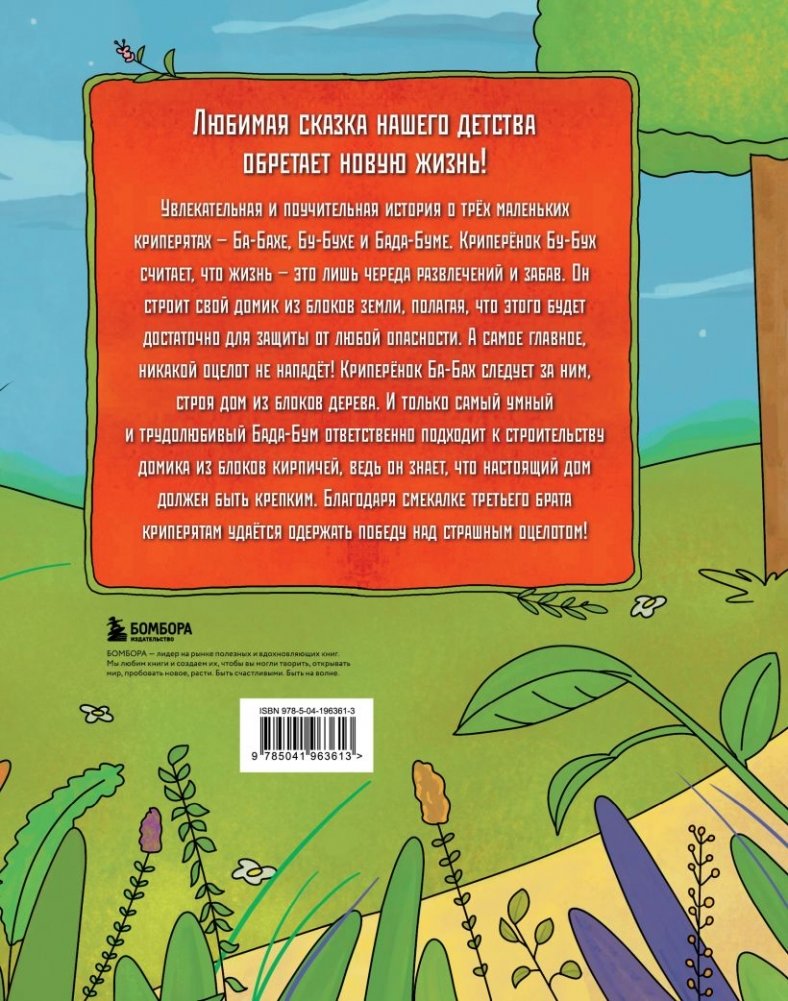 Увлекательная и поучительная история о трёх маленьких криперятах — Ба-Бахе, Бу-Бухе и Бада-Буме. Криперёнок Бу-Бух строит свой домик из блоков земли. Криперёнок Ба-Бах — дом из блоков дерева. И только Бада-Бум ответственно подходит к строительству домика из блоков кирпичей. Благодаря смекалке третьего брата криперятам удаётся одержать победу над страшным оцелотом!