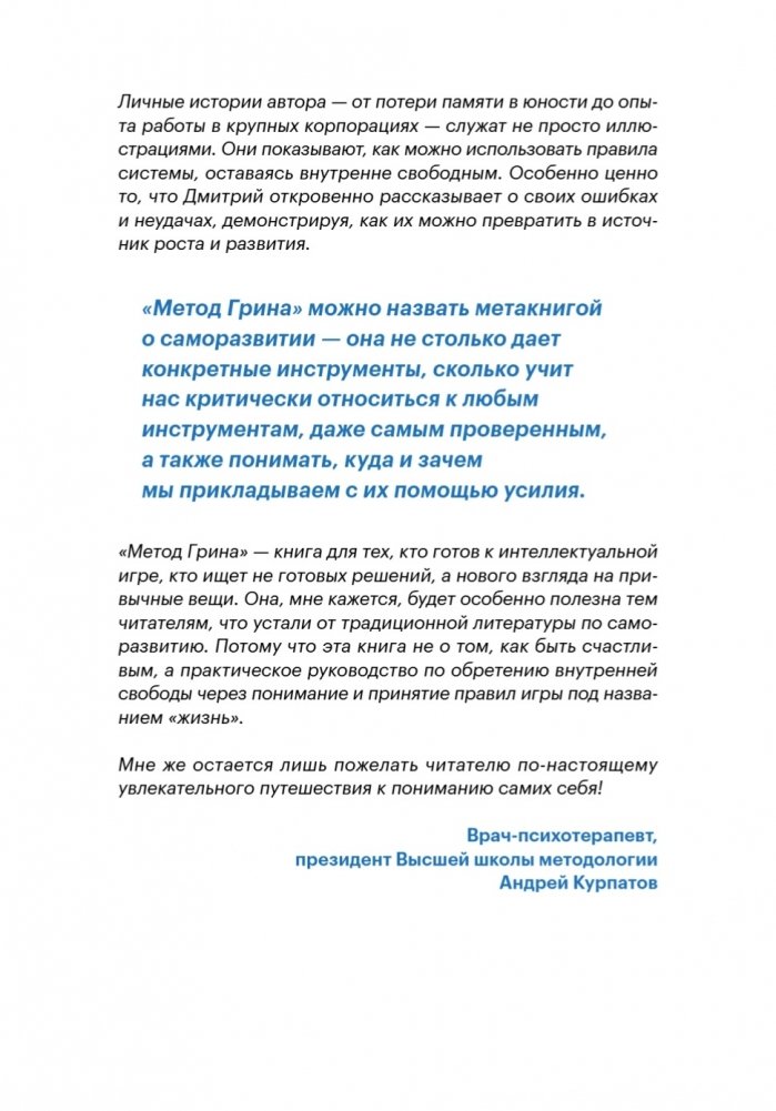 Метод Грина — это практичный инструмент для того, чтобы пересобрать себя: отказаться от иллюзий, убрать шум и понять, чего хочешь на самом деле. А главное — начать действовать.