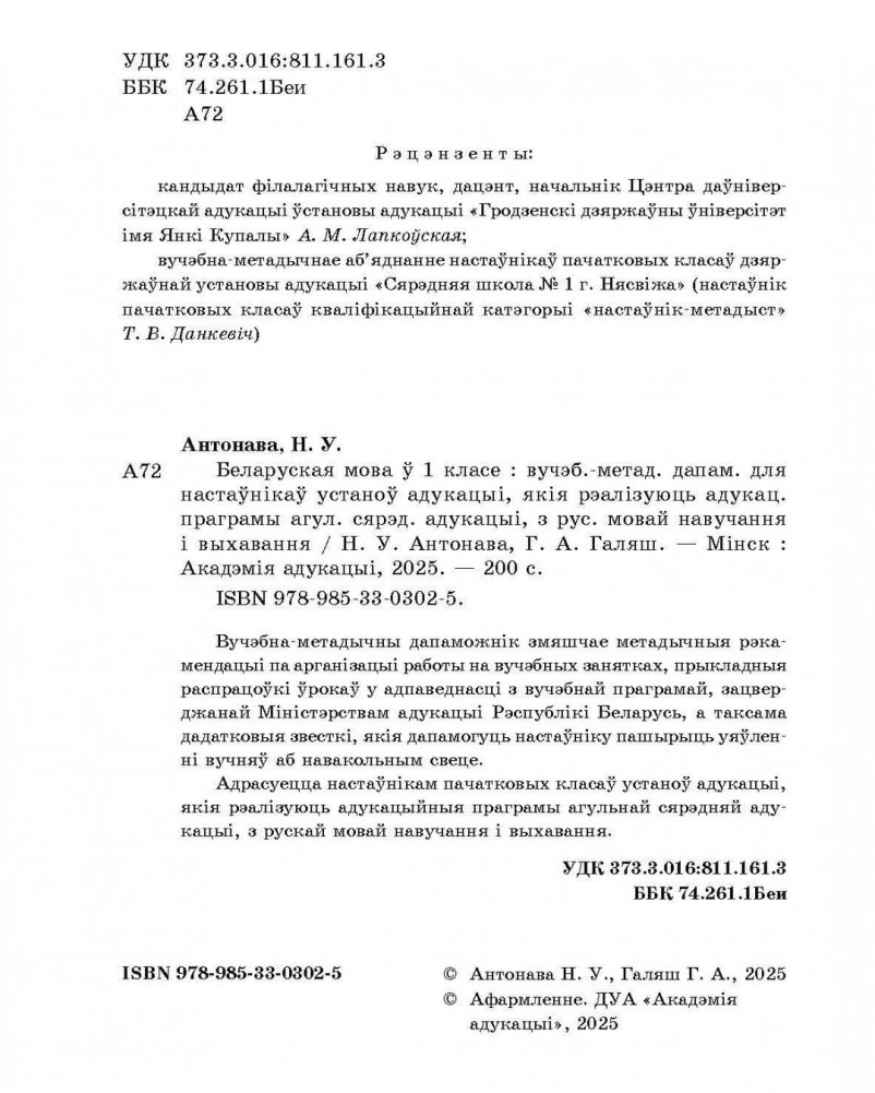 Беларуская мова ў 1 класе. Вучэбна-метадычны дапаможнік. ГРЫФ