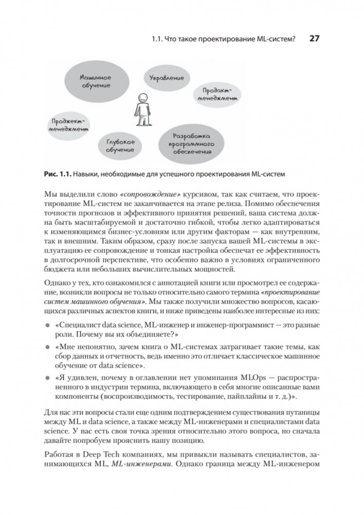 Проектирование и развертывание системы машинного обучения — это сложный многоэтапный процесс, требующий разнообразных компетенций и участия специалистов разных ролей. Независимо от того, интегрируете ли вы ML в существующий проект или проектируете ML-систему с нуля, вам необходимо ориентироваться в огромных датасетах и потоках, определять требования к тестированию и развертыванию, а также учитывать сложности внедрения ML-моделей в продакшен. Это практическое руководство по полному циклу разработки ML-проектов. Вы шаг за шагом пройдете весь фреймворк: проектирование, внедрение, релиз и сопровождение ML-системы. Чек-листы с необходимыми требованиями и примеры из реальной практики помогут развернуть и оптимизировать вашу собственную ML-систему. Вам особенно понравятся авторские байки и советы из личного опыта авторов, а также рекомендации по подготовке к System design интервью.