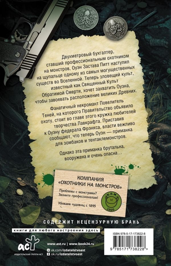 Двухметровый бухгалтер, ставший профессиональным охотником на монстров, Оуэн Застава Питт наступил на щупальце одному из самых могущественных существ во Вселенной. Теперь зловещий культ, известный как Священный Культ Обратимой Смерти, хочет захватить Оуэна, чтобы завоевать расположение великих Древних.