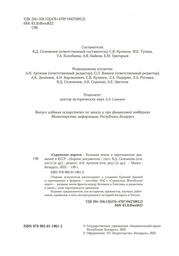 Сборник документов рассказывает о создании Красной Армией и партизанами в феврале — сентябре 1942 г. «Суражских (Витебских) ворот» — разрыва линии фронта между Велижем и Усвятами, и развитием в связи с этим партизанского движения.