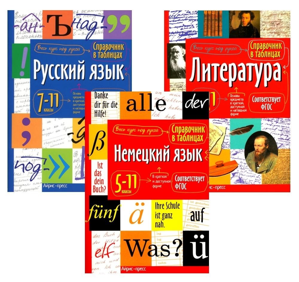 Хотите, чтобы ваш ребенок успешно справился с учёбой? Для этого необходим надёжный и незаменимый помощник. Таким помощником и идеальным инструментом станет комплект справочников по литературе, русскому и немецкому языку, который содержит структурированный материал для подготовки к экзаменам, контрольным и проверочным работам.