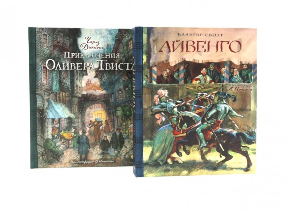 Комплект из двух шедевров мировой классики — «Айвенго» Вальтера Скотта и «Приключения Оливера Твиста» Чарльза Диккенса — в изданиях издательства «Лабиринт Пресс».