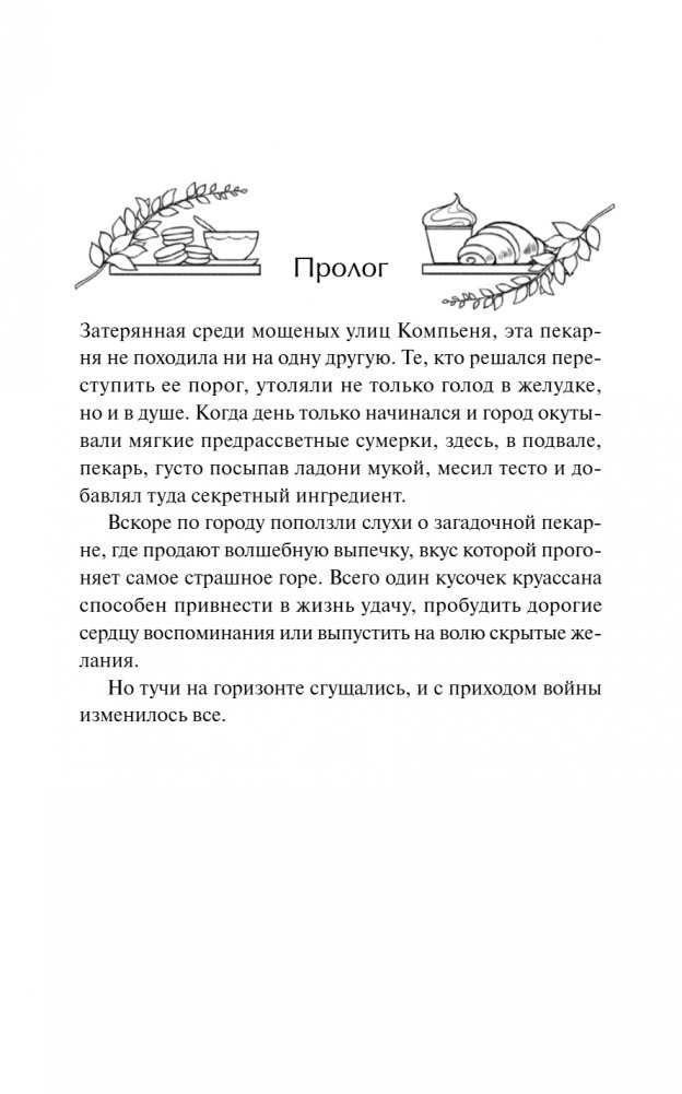 Атмосферный роман о французском городке, таинственной пекарне и девушке, которая решилась начать жизнь заново. Иногда судьба подбрасывает нам не то, что мы ждем, а то, что нам действительно нужно. Эди Лейн оставила все — Ирландию, горечь потерь, беспросветную рутину , — чтобы исполнить мечту: отправиться в Париж. Но жизнь играет с ней злую шутку: вместо роскошной столицы Эди попадает в тихий городок Компьень, вместо уютного заведения с открытки — в пекарню с мрачной хозяйкой и строгими правилами. По ночам из подвала доносятся странные звуки, мадам Моро и ее помощник явно что-то скрывают, а к кухне, где создается восхитительная выпечка, велено не приближаться. Это место определенно хранит какие-то тайны, и Эди решительно намерена их узнать. Для кого эта книга Для тех, кто любит истории о новой жизни в уютных маленьких городках. Для тех, кто обожает книги о пекарнях, еде и французском шарме. Для читателей, которым близки сюжеты о преодолении утрат и поиске себя.