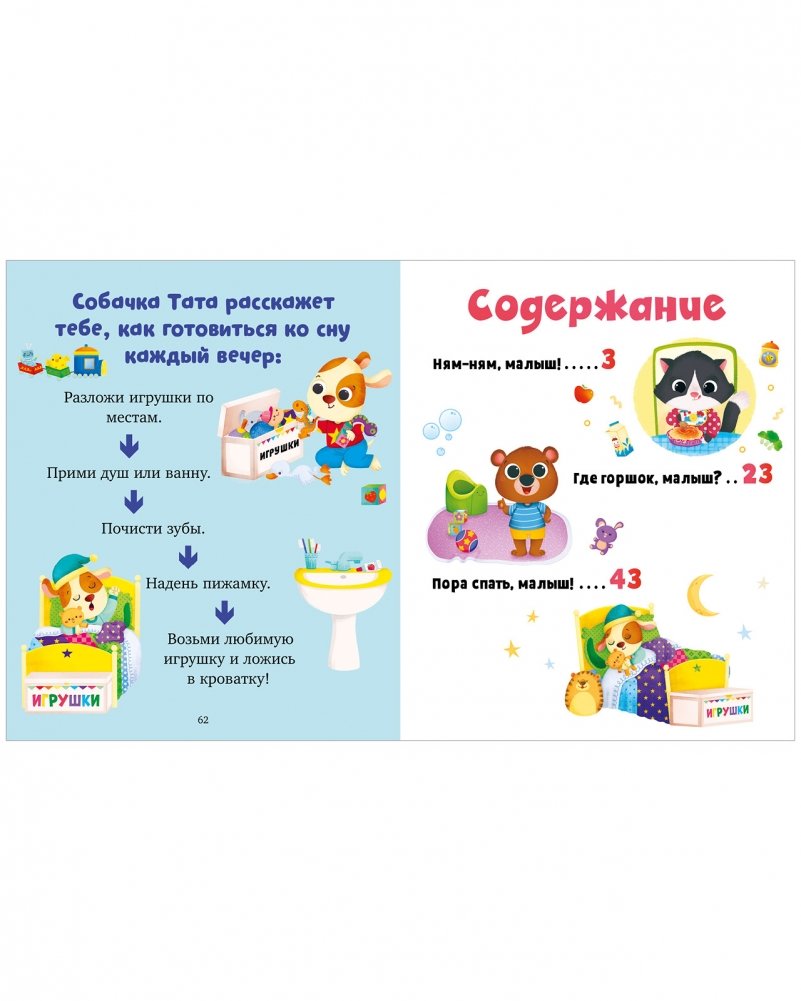 В этой книжке котя Катя, медвежонок Моня и собачка Тата расскажут малышам, как стать самостоятельными: стараться есть аккуратно и пользоваться вилками и ложками, садиться на горшок и мыть руки с мылом, каждый вечер убирать игрушки, чистить зубы и готовиться ко сну.