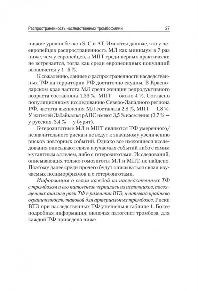 Подробно разбираются классические и редкие тромбофилии (мутации Лейдена и протромбина, дефициты антитромбина, протеинов C и S, гипергомоцистеинемия, нарушения фибринолиза и новые маркеры МКБ-11), алгоритмы диагностики и лечения с учётом возраста, сопутствующей патологии и риска рецидива. Отдельные главы — об открытом овальном окне, церебральном венозном тромбозе и терапии у беременных.