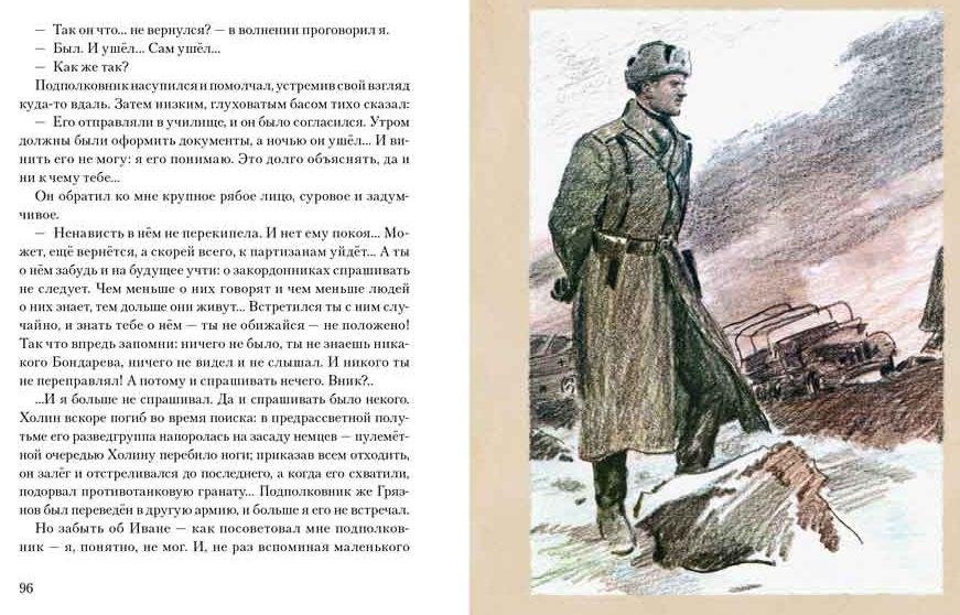На долю двенадцатилетнего Ивана выпало много недетских испытаний, мужских дел и обязанностей. Мальчик потерял родных и прошёл через ужасы лагеря смерти. Он ненавидит врага — тяжело, по-взрослому — и живёт по суровым законам настоящей, невыдуманной войны. И быть защитником Отечества — сознательный выбор Ивана. В этой книге без приукрашивания и утайки Владимир Богомолов рассказывает о войне — безжалостной и бесчеловечной. Трагическая и правдивая история мальчика-разведчика проиллюстрирована художником Игорем Пчелко, которому удалось тонко и глубоко передать характеры персонажей. Повесть послужила основой для знаменитого художественного фильма «Иваново детство» режиссёра Андрея Тарковского.