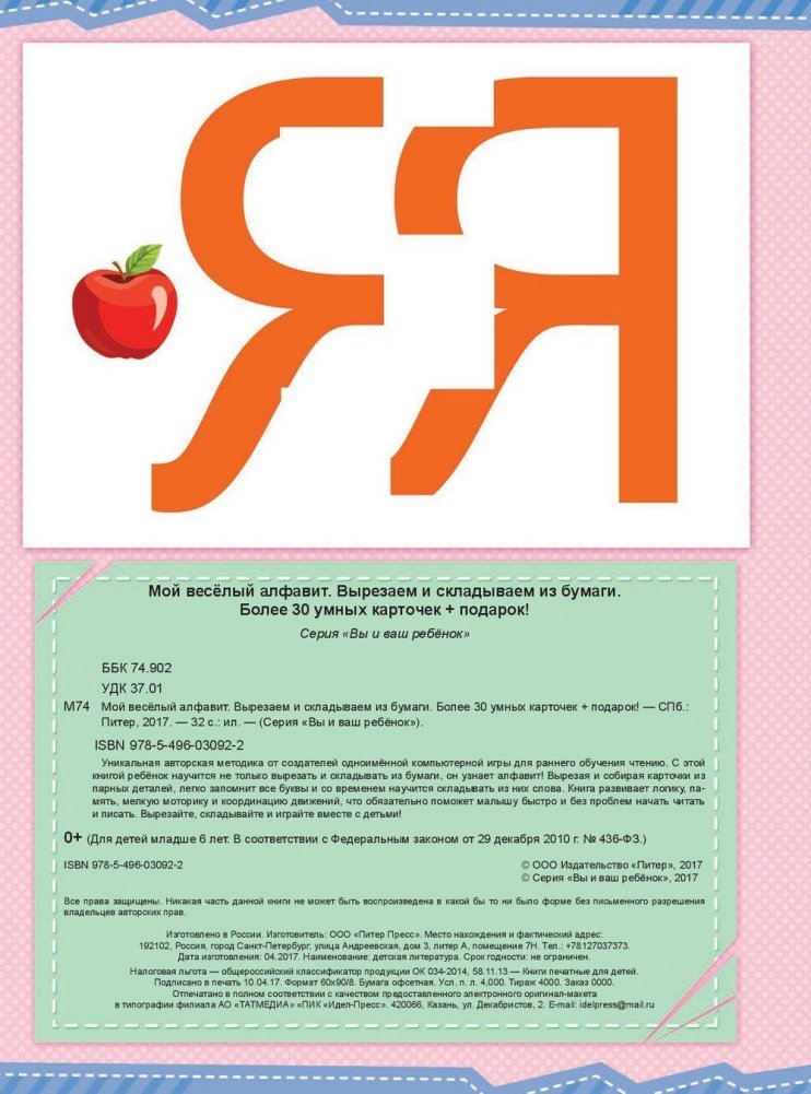 Мой веселый алфавит. Вырезаем и складываем из бумаги. Более 30 умных карточек + подарок. ФГОС