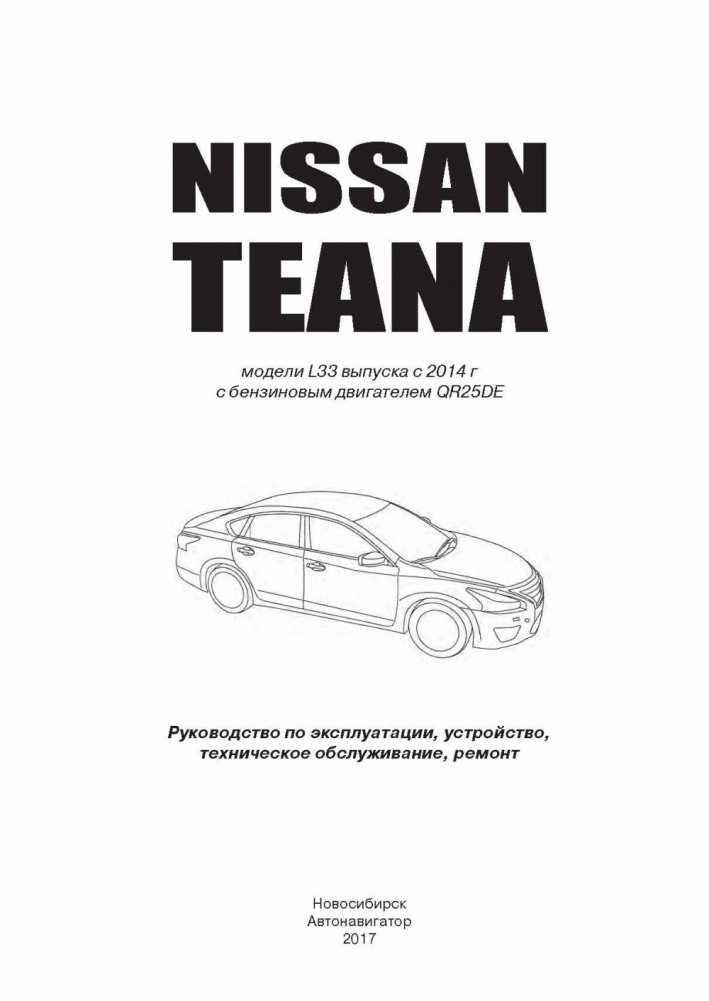 Nissan Teana с 2014 с бензиновым двигателем 2,5 л. Руководство по ремонту и техническому обслуживанию