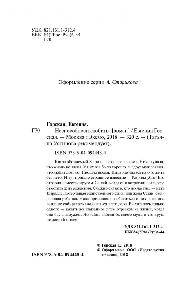 Когда обожаемый Кирилл выгнал ее из дома, Ника думала, что жизнь кончена. У них все было хорошо, и вдруг муж заявил, что любит другую. Прошло время, Ника научилась как-то жить без него. И тут пришло страшное известие — Кирилл убит! Его отравили вместе с другом Сашей, когда они встретились на даче отметить день рождения. Сложно сказать, кто несчастнее — мать Кирилла, потерявшая единственного сына, или жена Саши, ожидающая ребенка. Нике пришлось позаботиться о них, хотя она вовсе не собиралась ввязываться в это дело. Ей хотелось только одного — забыть все связанное с тем отрезком ее жизни, когда она была замужем. Но тайна гибели бывшего мужа и его друга не дает ей покоя.